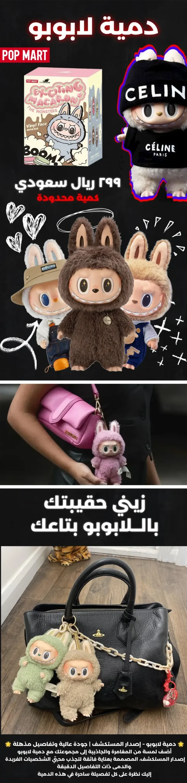 لا، لأن دمية اللابوبو تأتي بشكل عشوائي من الشركة المصنعة فلا تستطيع أن تعرف شكل أو لون اللابوبو الا عند فتح الباكج، كل شكل أو لون معين له قيمة خاصة قد تصل الى 10000 ريال